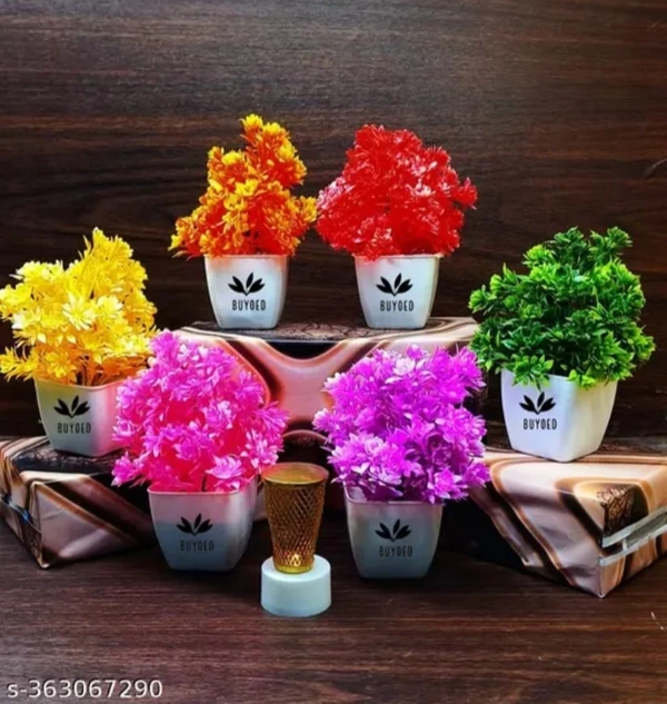 Artificial Flowers With Pot (Pack Of 6)