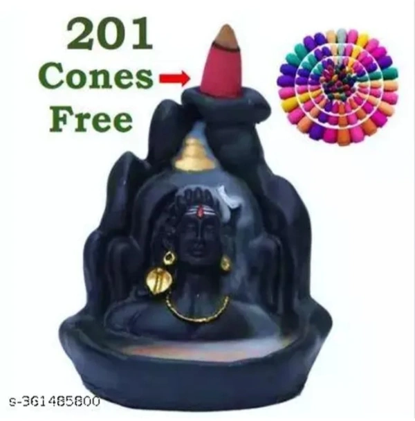 Name: Handcrafted Lord Adiyogi, Mahadev, Shiv Adi Shankara | Backflow Cone Incense Holder | Shiv Decorative Showpiece with 201 Free Fragrance Smoke Backflow Incense Cone