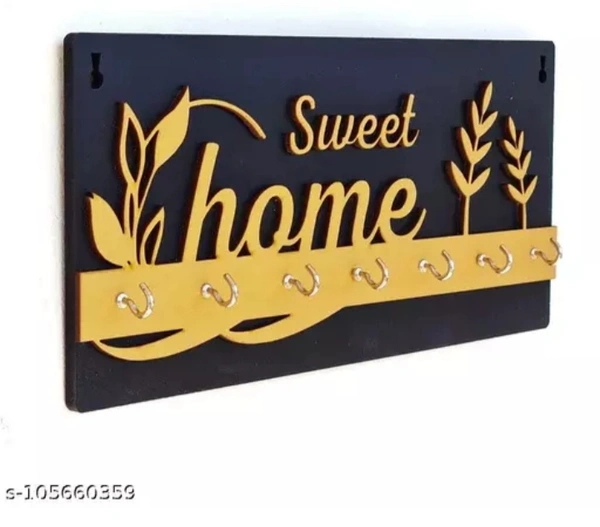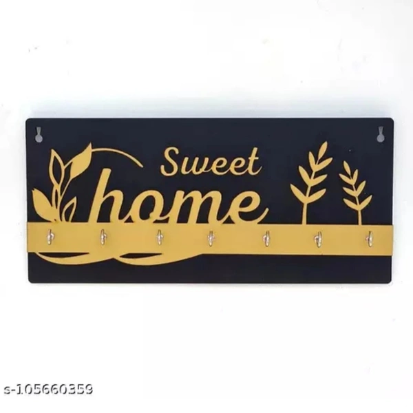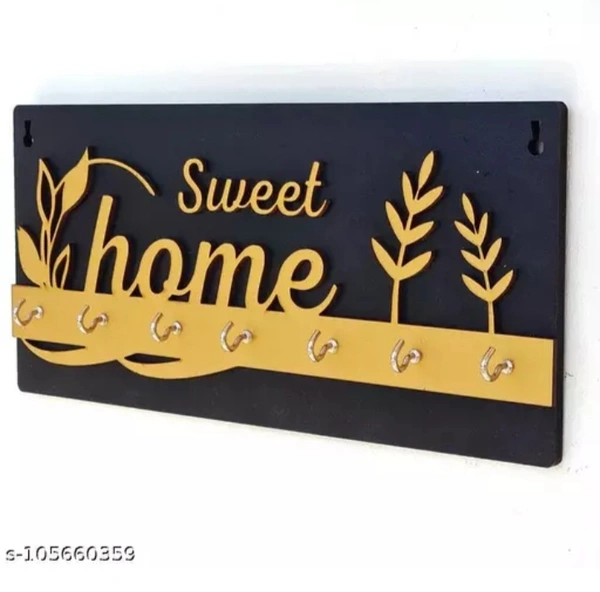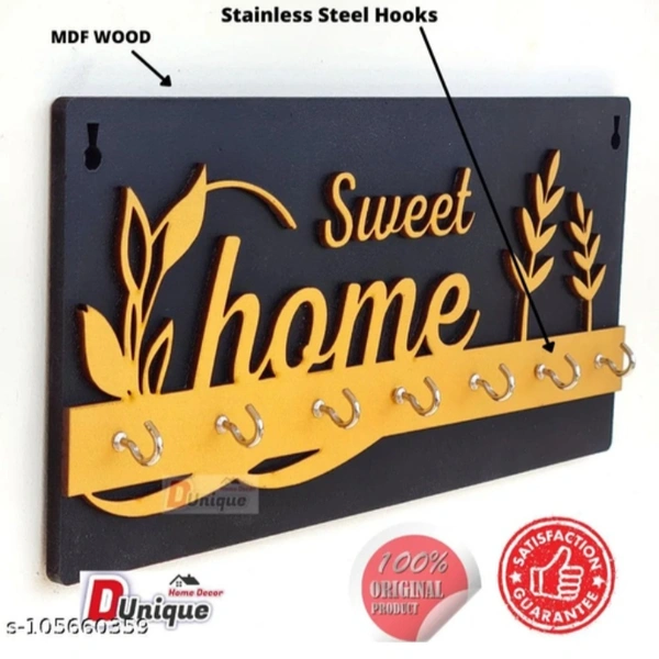 D Unique Home Decor Unique Premium Quality Wooden stylish Key Holder For Wall Decor With Stylish Stainless steel 6 Hooks Beautiful Key Organizer for Home Decoration This Designer Product is made by 6 mm MDF wooden. We Provide Different stale Variation For Choose Your Best Design For Decorate Your Wall. With Matt Black Base and Metallic Golden color Combination Looks Very Attractive On Your Wall. Stainless Steel hooks Gives Proper strength to hold key chain. this is Wall Mount Product Easy To Hang With Double side tape So No Need To Drill on Wall or Optional With Nail. This Unique Beautiful Key Hanger Make more Beautiful to your home, Also Use full Item For Gift . A perfect gift idea for your friends, family members, friends and loved one during special events like house warming party, Diwali, New Year, Birthday, Valentine for her/ him etc. Its Wall Mounted key hanger/ Key Hanging/ Key Holder Keychain Holder for Home decor is Ideal for Home, Living Room, Bedroom & suitable for any indoor area. Each keyring holder has gone through a stringent quality checking process in multi-stages, with a checkpoint of multiple quality aspects. The modern designed Key Holders is a great addition to your space.