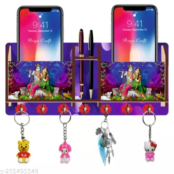 Premium Unique Stylish 2 Box Radha Krishna Wooden Key Holder (7 Hooks)