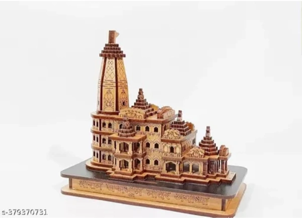Name: Ram Mandir Ayodhya Wooden Hand Carved Temple Decorative Showpiece Wood Temple for Gift Replica Wooden Multi use CAR Deshboard Ideal for Home Decor, Temple and Best Gift