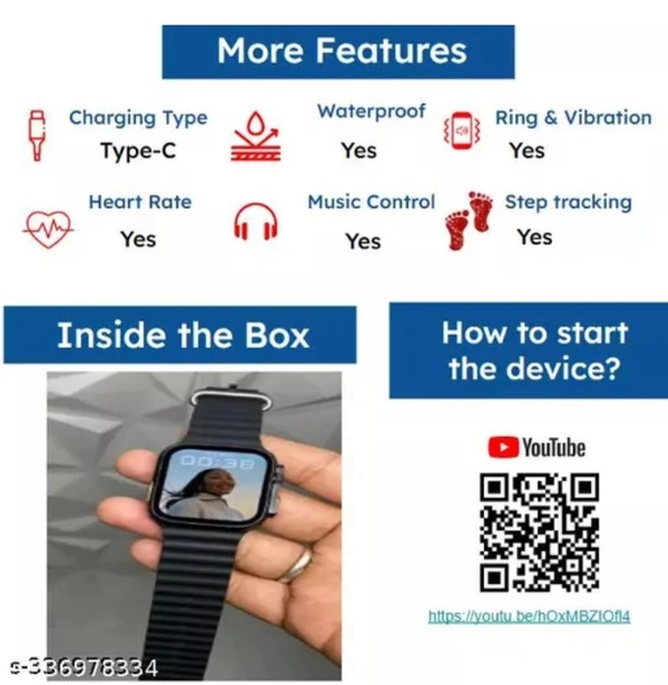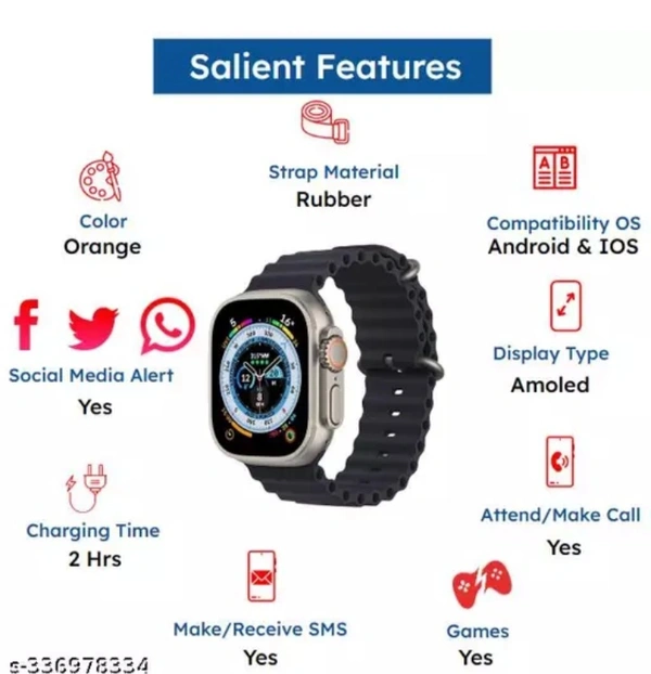 Name: T800 Smartwatch withBluetooth Calling,SMS Alert, Social Media Alert, Heartrate & Step Tracking(Black Strap, Rubber Material)