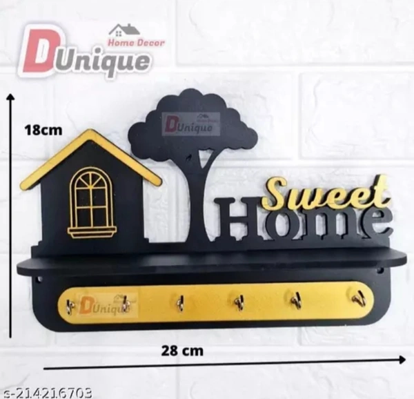 D Unique Home Decor Unique Premium Quality Wooden stylish Key Holder For Wall Decor With Stylish Stainless steel 6 Hooks Beautiful Key Organizer for Home Decoration This Designer Product is made by 6 mm MDF wooden. With Black And White Color option, Hooks Are made with High Quality Stainless Steel . this is Wall Mount Product Easy To Hang With Double side tape or With Nail Support. This Unique Beautiful Key Hanger Make more Beautiful to your home, Perfect Gift Item : A perfect gift idea for your friends, family members, friends and loved one during special events like house warming party, Diwali, New Year, Birthday, Valentine for her/ him etc. Its Wall Mounted key hanger/ Key Hanging/ Key Holder Keychain Holder for Home decor is Ideal for Home, Living Room, Bedroom & suitable for any indoor area. Each keyring holder has gone through a stringent quality checking process in multi-stages, with a checkpoint of multiple quality aspects. The modern designed Key Holders is a great addition to your space.